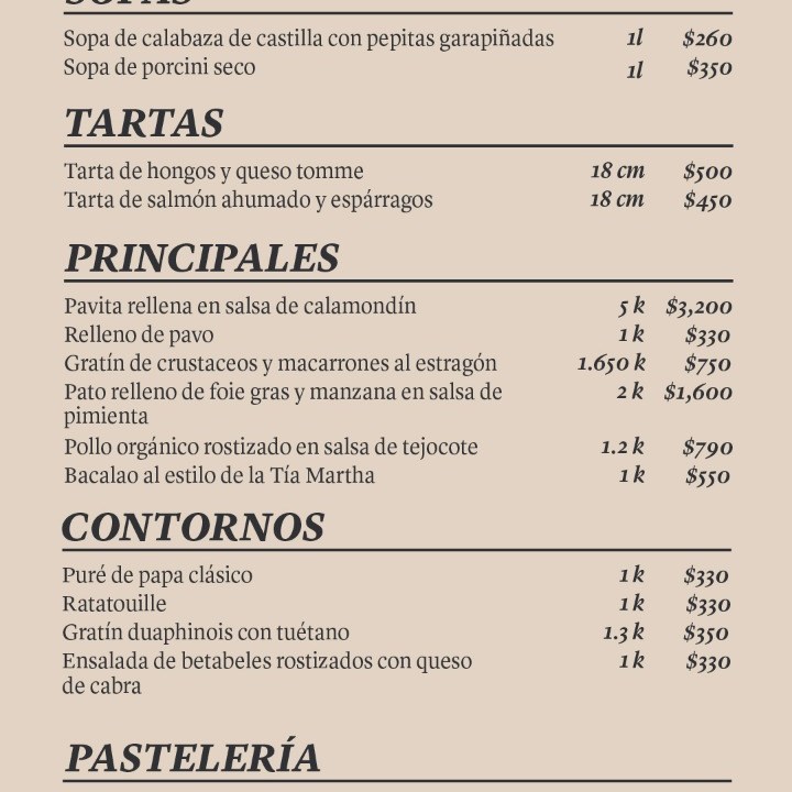 El equipo de Mónica Patiño de sus restaurantes Delirio y Casa Virginia tienen estas opciones festivas de varias cocinas del mundo. Todo es a la carta y puedes comprar por kilo o unidad.